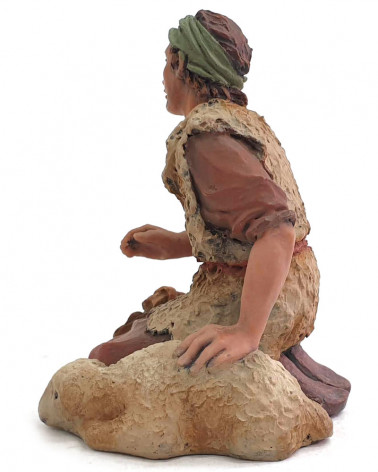 Pastor con cordero adorando 14cm.