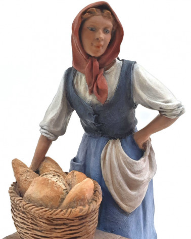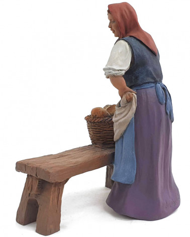 Mère avec corbeille à pain sur le banc